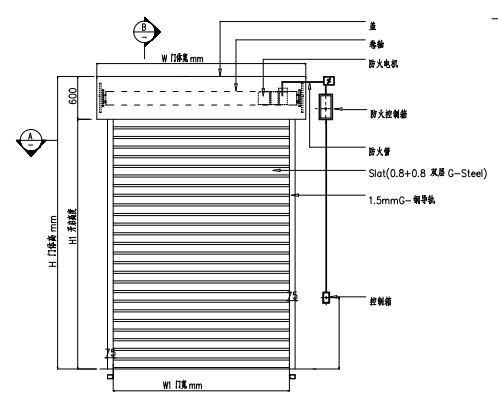 防火卷簾門(mén)同防火墻的作用一樣起到水平防火分隔,它由簾板、座板、導(dǎo)軌、支座、卷軸、箱體、控制箱、卷門(mén)機(jī)、限位器,門(mén)楣、手動(dòng)速放開(kāi)關(guān)裝置、按鈕開(kāi)關(guān)和保險(xiǎn)裝置等13個(gè)部分組成,一般安裝在不便采用防火墻分隔的部位。如:敞開(kāi)電梯廳、自動(dòng)扶梯、百貨大樓的寬大營(yíng)業(yè)廳、展覽樓的展覽廳和建筑物中洞口較大不能用防火門(mén)窗的部位。防火卷簾門(mén)在建筑工程中,使防火分隔得到了廣大的應(yīng)用。