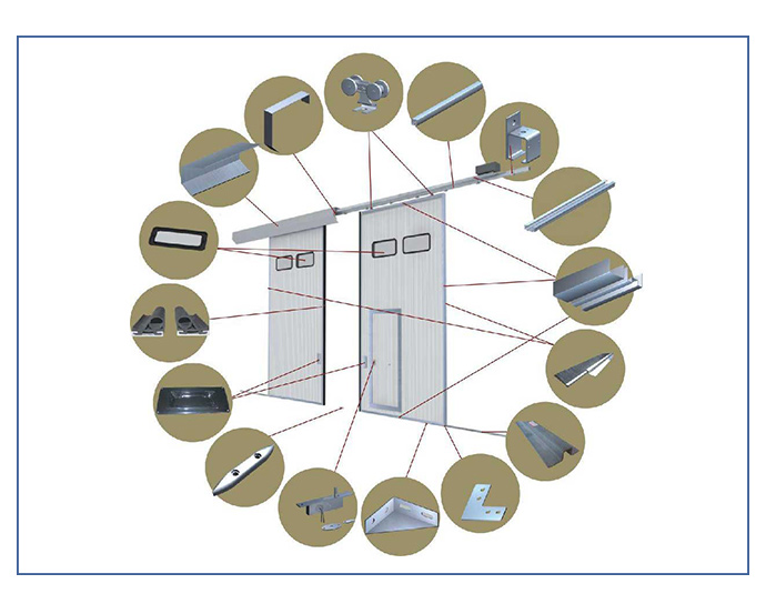 推拉門常用于各種車間、廠房、倉庫用門;在建筑物門洞左右的空間,選擇雙向或單向推拉的開啟形式;在建筑物門洞尺寸大小,選擇左右或上下重疊推拉的開啟形式;一般為上承重懸掛式,當用戶需要或門洞上方不具備安裝軌道的條件時,可設計為下承重支撐式;為方便人員進出和保證采光,可開設小門或采光窗。
